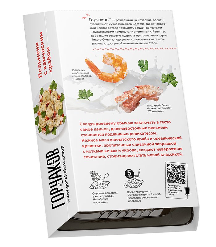 Флагманский продукт, переводящий традицию в мир высокой гастрономии. Нежное мясо камчатского краба и океанической креветки в сочетании с мягким сливочным сыром и тонкими нотками кинзы и укропа. Этот продукт — не просто еда, а символ новой русской кухни, объединяющий северную пользу и безупречный вкус